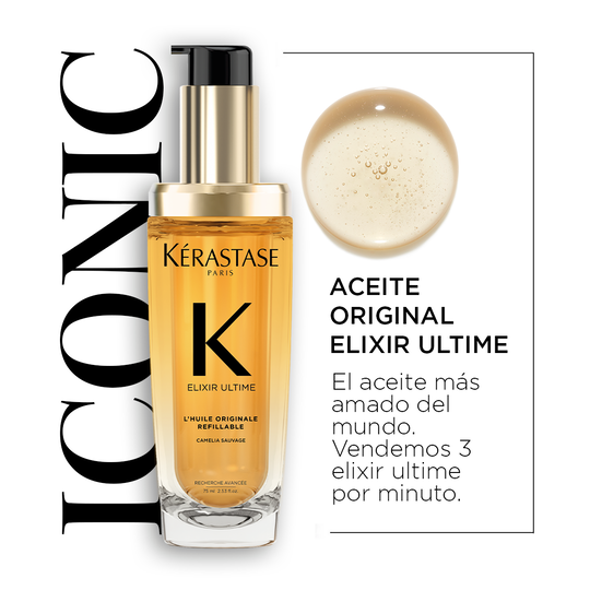 El aceite icónico recargable, para todo tipo de cabello.
