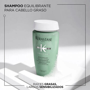 Shampoo equilibrante para raíces grasas y largos sensibilizados.Purifica el cuero cabelludo para reducir el exceso de grasitud y los olores.